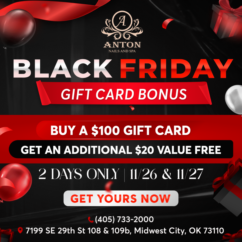 Conveniently located at 7199 SE 29th St, Suites 108 & 109B, Midwest City, OK 73110, our salon specializes in pedicures, natural manicures, Gel-X, T.A.P Hybrid Gel, Builder Gel, Dipping Powder, Structure Base Gel, custom nail designs, waxing, lash extensions, and even kids’ nail services (for ages 8 and under).